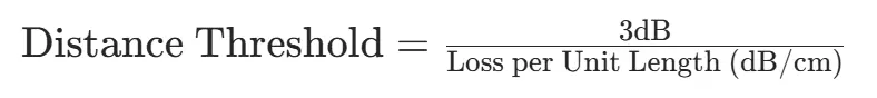 The distance at which attenuation exceeds 3dB is calculated as: